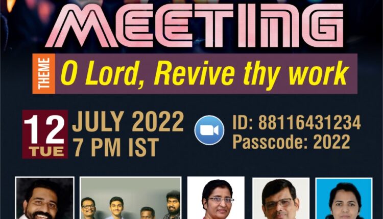 ബെംഗളൂരു: ക്രൈസ്തവ എഴുത്തുപുര കർണാടക ചാപ്റ്ററിന്റെ നേതൃത്വത്തിൽ നാളെ വൈകുന്നേരം ഏഴു മണിക്ക് റിവൈവൽ മീറ്റിംഗ് നടക്കും. ക്രൈസ്തവ എഴുത്തുപുര ജനറൽ വൈസ് പ്രസിഡന്റും കർണാടക ചാപ്റ്റർ കോർഡിനേറ്ററുമായ പാസ്റ്റർ ബ്ലെസ്സൻ ചെറിയനാട് അദ്ധ്യക്ഷത വഹിക്കുന്ന മീറ്റിംഗിൽ ക്രൈസ്തവ എഴുത്തുപുര ഒമാൻ ചാപ്റ്റർ ക്വയർ ആരാധനയ്ക്കു നേതൃത്വം നൽകും. ക്രൈസ്തവ എഴുത്തുപുര കർണാടക ചാപ്റ്റർ അപ്പർ റൂം കോർഡിനേറ്റർ പാസ്റ്റർ പി എസ് ജോർജ്ജ് മധ്യസ്ഥ പ്രാർത്ഥന നയിക്കും. അനുഗ്രഹിത പ്രഭാഷക സിസ്റ്റർ മേഴ്സി തോമസ് (റാന്നി) തിരു വചനസന്ദേശം നൽകും. ക്രൈസ്തവ എഴുത്തുപുര അപ്പർ റൂം എക്സിക്യൂട്ടീവ് ഡയറക്ടർ സിസ്റ്റർ വിൽസി കുര്യനും വിവിധ ചാപ്റ്റർ ലീഡേഴ്സും പങ്കെടുക്കും.