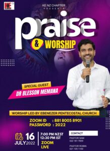 കെ ഇ ന്യൂസീലാൻഡ് ചാപ്റ്റർ : പ്രയിസ് ആൻഡ് വർഷിപ് ജൂലൈ 16 ന്