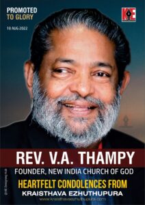 ചിങ്ങവനം: ന്യൂ ഇന്ത്യാ ദൈവസഭയുടെ സ്ഥാപകനും പ്രസിഡന്റുമായ പാസ്റ്റർ വി. എ. തമ്പി നിത്യയിൽ ചേർക്കപ്പെട്ടു. തലച്ചോറിൽ രക്തസ്രാവം ഉണ്ടായതിനെ തുടർന്ന് ഹോസ്പറ്റലിൽ വെച്ചായിരുന്നു അന്ത്യം. കുറിച്ചി നീലംപേരൂർ വേണാട്ട് ഏബ്രഹാമിന്റെ മകനായി 1941ൽ ജനിച്ചു. ക്നാനായ സമുദായത്തിൽ നിന്ന് പെന്തെക്കോസ്ത് അനുഭവത്തിലേക്ക് നയിക്കപ്പെട്ട ഇദ്ദേഹം ശക്തനായ സുവിശേഷകനും അനുഗ്രഹീതനായ പ്രഭാഷകനുമാണ്. നിരവധി പ്രതിസന്ധികളെ അതിജീവിച്ച് സുവിശേഷീകരണത്തിനുവേണ്ടി സമ്പൂർണ്ണമായി ഇറങ്ങിത്തിരിച്ച ഇദ്ദേഹത്തിന്റെ പ്രവർത്തനങ്ങളുടെ ഫലമായി നിരവധി സഭകൾ ഉടലെടുത്തു. 1976ൽ ന്യൂ ഇന്ത്യാ ദൈവസഭ എന്ന പ്രസ്ഥാനത്തിന് തുടക്കം കുറിച്ചു. ഇന്ന് ഇന്ത്യയിൽ 2350 -ലധികം ലോക്കൽ സഭകളും മറ്റ് നിരവധി വിദ്യാഭ്യാസ-ആതുര സ്ഥാപനങ്ങളുമുള്ള പ്രസ്ഥാനമായി ഇത് വളർന്നു കഴിഞ്ഞു.
