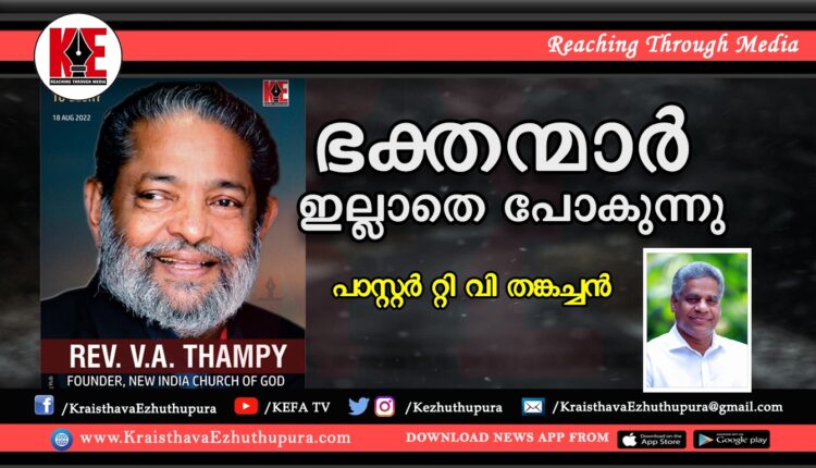 ഭക്തന്മാർ ഇല്ലാതെ പോകുന്നു: പാസ്റ്റർ റ്റി വി തങ്കച്ചൻ