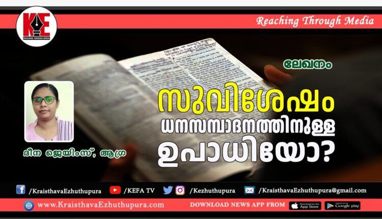 ലേഖനം: സുവിശേഷം ധനസമ്പാദനത്തിനുള്ള ഉപാധിയോ? | ദീന ജെയിംസ് ആഗ്ര