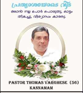 പാസ്റ്റർ തോമസ് വർഗീസിന്റെ സംസ്കാരം ചൊവ്വാഴ്ച