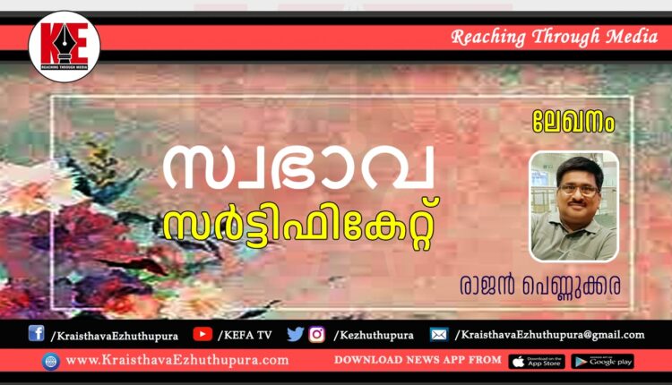 ലേഖനം: സ്വഭാവ സർട്ടിഫികേറ്റ് | രാജൻ പെണ്ണുക്കര