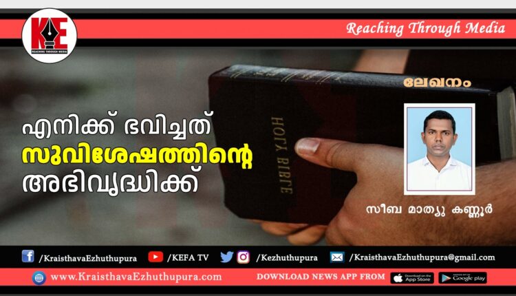 ലേഖനം: എനിക്ക് ഭവിച്ചത് സുവിശേഷത്തിന്റെ അഭിവൃദ്ധിക്ക് | സീബ മാത്യൂ കണ്ണൂർ