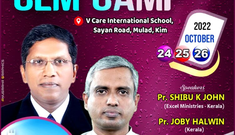 ഗുജറാത്ത്: സി ഇ എം ഗുജറാത്ത് സെന്റർ ക്യാമ്പ് ഒക്ടോബർ 24 മുതൽ 26 വരെ സൂറത്തിലെ കിം വി കെയർ ഇന്റർനാഷണൽ സ്കൂളിൽ വച്ച് നടക്കും. “വിജയികളായി ഓടുക” എന്ന വിഷയത്തെ ആസ്പദമാക്കി പാസ്റ്റർ ഷിബു കെ ജോൺ (Excel Ministries- Kerala), പാസ്റ്റർ ജോബി ഹാൽവിൻ (Kerala) എന്നിവർ പ്രസംഗിക്കും. താലന്ത് പരിശോധനയും ഉണ്ടായിരിക്കും.സി ഇ എം ക്വയർ ഗാനങ്ങൾ ആലപിക്കും. പ്രസിഡന്റ് പാസ്റ്റർ ടോണി വർഗീസ്, സെക്രട്ടറി ബെഞ്ചമിൻ മാത്യു തുടങ്ങിയവർ നേതൃത്വം നൽകും.