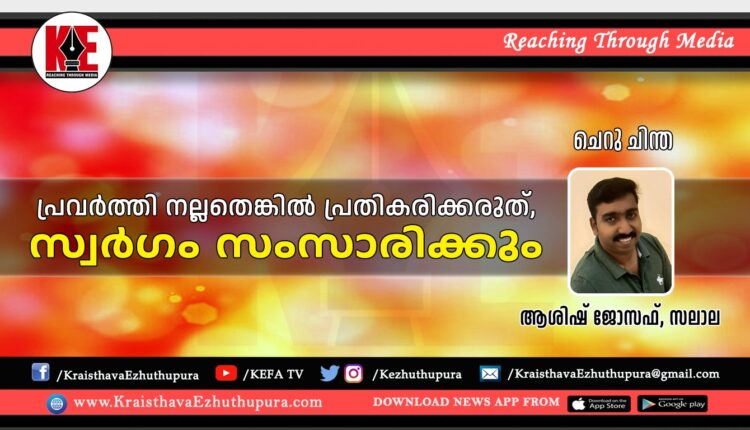 ചെറു ചിന്ത: പ്രവർത്തി നല്ലതെങ്കിൽ പ്രതികരിക്കരുത്, സ്വർഗം സംസാരിക്കും | ആശിഷ് ജോസഫ്, സലാല