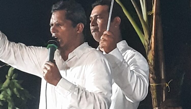 തുലാവർഷ മഴ വകവയ്ക്കാതെ കുട ചൂടി പ്രസംഗിച്ച് പാസ്റ്റർ കെ.ജെ തോമസ് കുമളി