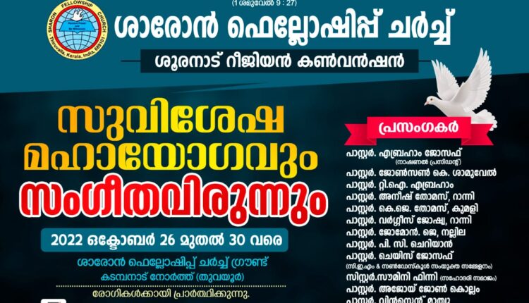 ശൂരനാട്:ശാരോൻ ഫെല്ലോഷിപ്പ് ചർച്ച് ശൂരനാട് റീജിയൻ കൺവൻഷൻ ഒക്ടോബർ 26 ബുധൻ