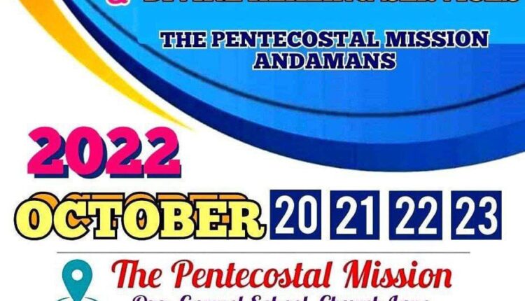 ആൻഡമാന്സ്: ദി പെന്തെക്കൊസ്ത് മിഷൻ ആൻഡമാന്സ് സെന്റർ വാർഷിക കൺവൻഷൻ ഇന്ന് ഒക്ടോബർ 20 മുതൽ 23 ഞായറാഴ്ച വരെ ആൻഡമാൻസിലെ പോർട്ട് ബ്ലെയർ ഗോൾഗറിലെ റ്റി പി എം സെന്റർ സഭാഹാളിൽ നടക്കും.