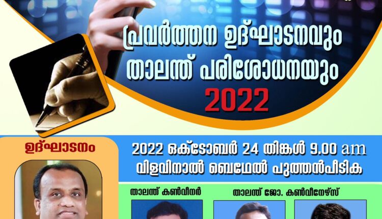 ഐ.പി.സി പത്തനംതിട്ട സെന്റർ പി.വൈ.പി.എ പ്രവർത്തന ഉദ്ഘാടനവും താലന്ത് പരിശോധനയും ഒക്ടോബർ 24ന്.