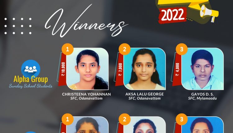 അധ്യാപകർക്കും മുതിർന്നവർക്കുമായുള്ള ബീറ്റാ ഗ്രൂപ്പിൽ ഒന്നാം സ്ഥാനം ഓമന വർഗീസ് (മൂശാരിക്കവല സഭ), രണ്ടാം സ്ഥാനം ഷിലു ഷിബു (കായംകുളം സഭ), മൂന്നാം സ്ഥാനം ജൂനിയ .എസ് (പട്ടകുളം സഭ( എന്നിവർ കരസ്ഥമാക്കി. ഇരു ഗ്രൂപ്പിലും ആദ്യ മൂന്നു സ്ഥാനം നേടിയവർക്ക് യഥാക്രമം ₹ 10000, ₹ 7000, ₹4000 വീതം ക്യാഷ് അവാർഡും മൊമൻ്റൊയും സർട്ടിഫിക്കറ്റും സഭാ ജനറൽ കൺവൻഷനോടനുബന്ധിച്ച് ഡിസംബർ 3ന് നടക്കുന്ന സൺഡേ സ്കൂൾ – സി ഇ എം സംയുക്ത സമ്മേളനത്തിൽ വിതരണം ചെയ്യും.