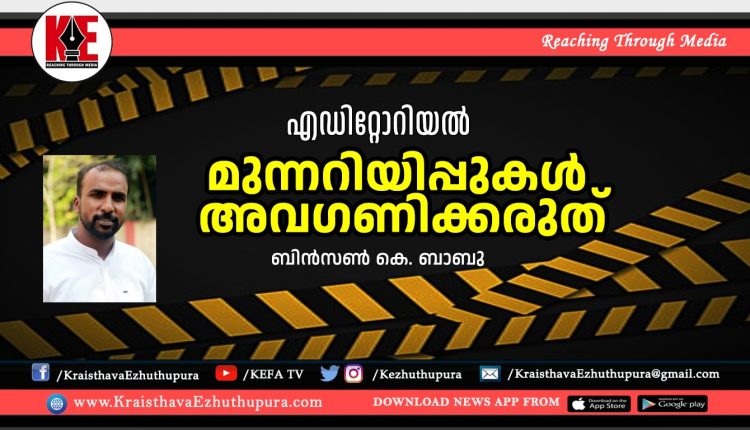 എഡിറ്റോറിയൽ : മുന്നറിയിപ്പുകൾ അവഗണിക്കരുത് | ബിൻസൺ കെ. ബാബു