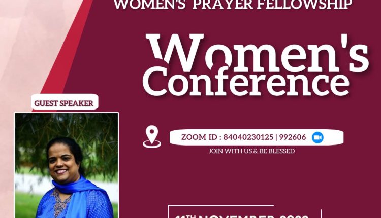എക്സൽ മിനിസ്ട്രീസ് വിമൻസ് പ്രയർ പ്രയർ ഫെല്ലോഷിപ്പിന്റെ നേതൃത്വതിൽ ഒരു പ്രാർത്ഥനാ കൂട്ടായ്മ സംഘടിപ്പിക്കുന്നു. 2022 നവംബർ 11 വെള്ളിയാഴ്ച വൈകിട്ട് 7 മുതൽ 9 വരെ സൂം പ്ലാറ്റ് ഫോമിലാണ് മീറ്റിംഗ് നടക്കുന്നത്.ഈ നാളുകളിൽ കർത്താവിനാൽ ശക്തമായി ഉപയോഗിക്കപ്പെട്ടു കൊണ്ടിരിക്കുന്ന സിസ്റ്റർ സാറ കോവൂർ USA (മേരി കോവൂരിൻ്റ മകൾ) വചന ശുശ്രുഷിക്കുന്നു. എല്ലാവരേയും ആ മീറ്റിംഗിലേക്കു ഹാർദ്ദവമായി സ്വാഗതം ചെയ്യുന്നു.