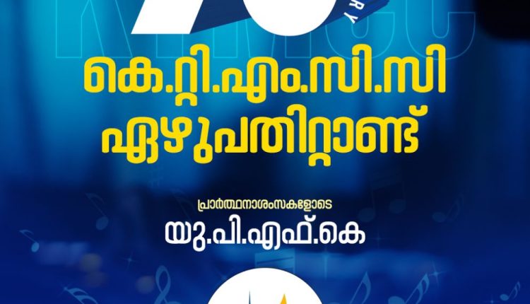 ഏഴുപതിറ്റാണ്ട് കെ റ്റി എം.സി.സി യെ ആത്മീയ ശുശ്രൂഷയിൽ കരുതിയ നാഥന് സ്തുതി സ്തോത്രങ്ങൾ അർപ്പിച്ചുകൊണ്ട് യു.പി.എഫ്.കെ ഗായക സംഘം പ്രാർത്ഥനാപൂർവ്വം സമർപ്പിക്കുന്ന