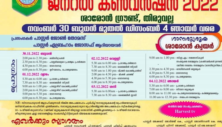 ശാരോൻ ഫെല്ലോഷിപ്പ് ചർച്ച് ജനറൽ കൺവൻഷൻ നവംബർ 30 മുതൽ