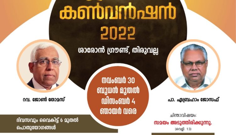 ശാരോൻ ഫെല്ലോഷിപ്പ് ചർച്ച് ജനറൽ കൺവൻഷൻ ഇന്ന് ആരംഭിക്കും