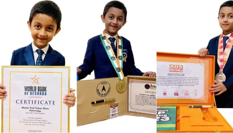 കോന്നി : 9 മിനിറ്റ് 49 സെക്കൻഡ്സ് കൊണ്ട് 27 ലെഗോ ബ്രിക്ക് മോഡൽസ് ഉണ്ടാക്കി ലോക, ഏഷ്യൻ, ഇന്ത്യൻ റെക്കോഡുകളിൽ ഇടം പിടിച്ചു ആറു വയസുകാരൻ. ഈ അപൂർവ്വ നേട്ടത്തിന് കോന്നി സ്വദേശി ആയ എമിൽ യോഹാൻ ഷിനു അർഹൻ ആയിരിക്കുകയാണ്.പലതരത്തിൽ ഉള്ള കാർ, ജീപ്പ്, ആപ്പിൾ, സ്വാൻ, റോബോട്ട്, ബിഎൽഡിങ്സ്, കാർട്ടൂൺ മോഡൽസ്, തുടങ്ങിയ ഇരുപത്തിയേഴു മോഡൽസ് ആണ് എമിൽ ഈ ചെറിയ സമയത്തിനുള്ളിൽ ഉണ്ടാക്കിയത്.ഈ നേട്ടം കൂടാതെ അഞ്ചു മിനിട്ടിൽ പതിമൂന്നു ലെഗോ മോഡൽസ് ഉണ്ടാക്കിയ ഏഷ്യ ബുക്ക് ഓഫ് റെക്കോർഡും ഇന്ത്യ ബുക്ക് ഓഫ് റെക്കോർഡും എമിലിനുണ്ട്.ഗേറ്റ്സ്ഹെഡ്, ന്യൂകാസിലിലെ ബ്രൈറ്റൺ അവന്യൂ പ്രൈമറി സ്കൂളിലെ ഒന്നാം ക്ലാസ് വിദ്യാര്ഥി ആണ് എമിൽ.കോന്നി ഇന്ത്യാ ദൈവസഭാംഗവും നെടുംങ്ങോട്ട് വില്ലയിൽ സയന്റിസ്റ്റ് ഷിനു യോഹന്നാന്റെയും സ്നേഹ സാമിന്റെയും മകനാണ്. എമിലി ആൻ ഷിനു സഹോദരി ആണ്.