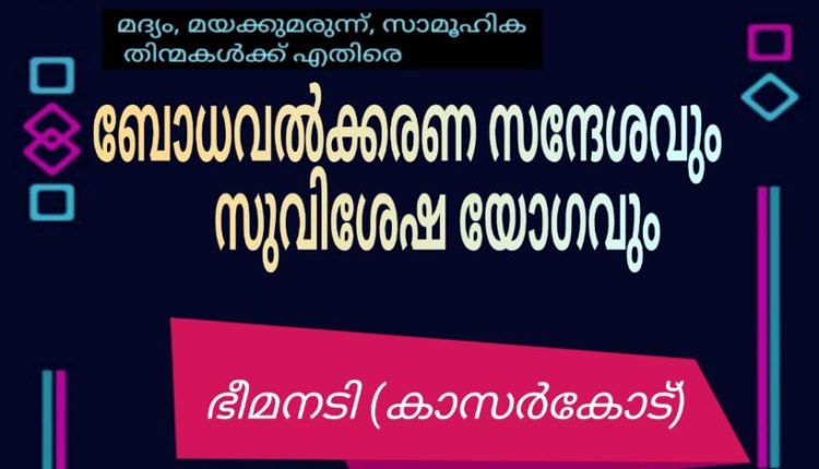 കാസർഗോഡ്: യുണൈറ്റഡ് പെന്തക്കോസ്തു ചർച്ച് ഇൻ ഇൻഡ്യാ മലബാർ സെക്ഷൻ മിഷൻസ് ഡിപ്പാർട്ട്മെന്റിന്റെ ആഭിമുഖത്തിൽ മദ്യം മയിക്കുമരുന്നു സാമൂഹികതിന്മകൾക്ക് എതിരെ ബോധവൽക്കരണ സന്ദേശം സുവിശേഷീകരണ യോഗം 2022 ഡിസംബർ 8, 9, 10 തീയതികളിൽ വ്യാഴം, വെള്ളി, ശനി ദിവസങ്ങളിൽ ഭീമനടിയിൽ വച്ച് നടക്കുന്നു.