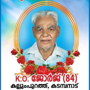 കടമ്പനാട്: കല്ലുകുഴി ഐ പി സി ഹെബ്രോൺ സഭാംഗം കല്ലുംപുറത്ത് ജോർജ് (84) ആണ് അപകടത്തെ തുടർന്ന് നിര്യാതനായത്. 06ന് ചൊവ്വാഴ്ച രാവിലെ ഏഴരയോടെ അടൂർ-കടമ്പനാട് റോഡിൽ കുഴികാല ജംക്ഷനിലെ വളവിലായിരുന്നു അപകടം. ബസ് തട്ടി റോഡിൽ വീണ ജോർജിൻ്റെ തലയിലൂടെ ബസിൻ്റ പിൻ ചക്രം കയറിയിറങ്ങി. കല്ലുകുഴി ഭാഗത്ത് നിന്ന് സ്കൂട്ടറിൽ കടമ്പനാട് ഭാഗത്തേക്ക് വരികയായിരുന്നു ജോർജ്. അടൂരിൽ നിന്ന് കൊല്ലത്തിന് സർവീസ് നടത്തിയ കെ എസ് ആർ ടി സി ബസാണ് സ്കൂട്ടറിൽ ഇടിച്ചത്. സംസ്കാരം 08 ഡിസംബർ വ്യാഴം രാവിലെ 9 മണിക്ക് ഭൌതിക ശരീരം ഭവനത്തിൽ കൊണ്ടുവരുന്നതും10 മണിക്ക് കല്ലുകുഴി ഐ. പി. സി ഹെബ്രോൻ ചർച്ചിൽ ശുശ്രൂഷയ്ക്ക് ശേഷം 12 മണിക്ക് തുവയൂർ സഭാ സെമിത്തേരിയിൽ.