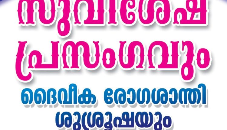 പുനലൂർ: ദി പെന്തെക്കൊസ്ത് മിഷൻ ചണ്ണപ്പേട്ട സഭയുടെ ആഭിമുഖ്യത്തിൽ സുവിശേഷ പ്രസംഗം ജനുവരി 23, 24 തീയതികളിൽ റ്റി.പി.എം ചണ്ണപ്പേട്ട ഫെയ്ത്ത് ഹോം ഗ്രൗണ്ടിൽ നടക്കും.