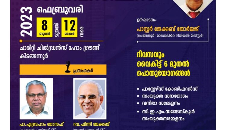 ശാരോൻ ഫെല്ലോഷിപ്പ് ചർച്ച് ചെങ്ങന്നൂർ സെന്റർ കൺവൻഷൻ ഫെബ്രുവരി 8 മുതൽ