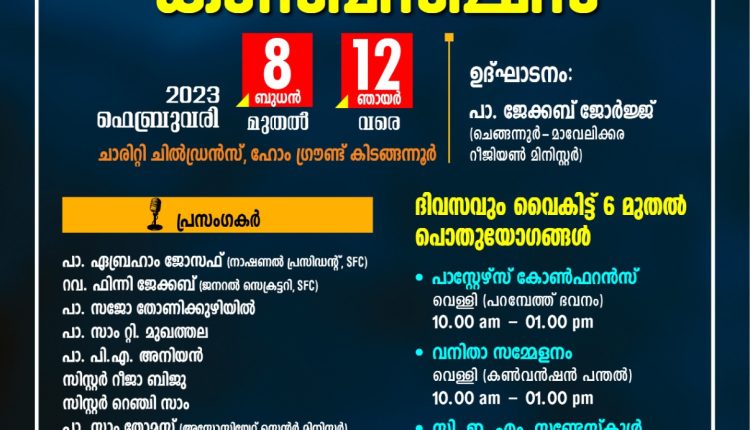 ശാരോൻ ഫെല്ലോഷിപ്പ് ചർച്ച് ചെങ്ങന്നൂർ സെന്റർ കൺവൻഷൻ ബുധനാഴ്ച ആരംഭിക്കും