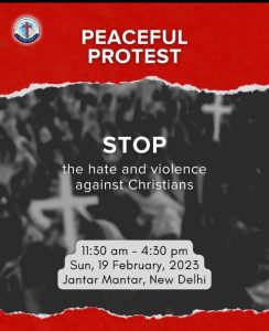ന്യൂഡൽഹി: ക്രൈസ്തവര്ക്ക് എതിരെ വിവിധ ഉത്തരേന്ത്യന് സംസ്ഥാനങ്ങളില് വര്ധിച്ചുവരുന്ന അതിക്രമങ്ങളില് പ്രതിഷേധിച്ച് ഇന്ന് ഡൽഹി ജന്തർമന്തറിൽ വിവിധ ക്രിസ്ത്യൻ സഭകളടക്കം 79 സംഘടനകൾ പ്രതിഷേധം സംഘടിപ്പിക്കുമെന്ന് യുണൈറ്റഡ് ക്രിസ്ത്യൻ ഫോറം ഡൽഹി എൻസിആർ ഭാരവാഹികൾ വാർത്താസമ്മേളനത്തിൽ പറഞ്ഞു. കത്തോലിക്കാ എപ്പിസ്കോപ്പൽ സഭകൾ മുതൽ ഇവാഞ്ചലിക്കൽ, പെന്തെക്കോസ്ത് സ്വതന്ത്രസഭകൾ വരെയുള്ളവർ പങ്കെടുക്കും.