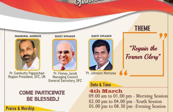 ഗ്ലോസ്റ്റർ (യു.കെ): 17 – മത് ശാരോൻ ഫെല്ലോഷിപ്പ് ചർച്ച് യു.കെ & അയർലൻഡ് നാഷണൽ കോൺഫറൻസ് മാർച്ച് 4, 5