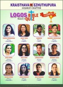 വഡോര/ ഗുജറാത്ത്: ദൈവവചനം വായിക്കുന്നവർക്കും വായിക്കാൻ ആഗ്രഹിക്കുന്നവർക്കും ഒരു പ്രോത്സാഹനമായി ക്രൈസ്തവ എഴുത്തുപുര ഗുജറാത്ത് ചാപ്റ്ററിൻ്റെ ആഭിമുഖ്യത്തിൽ 2022 ഡിസംബർ 11ന് നടത്തിയ മെഗാ ബൈബിൾ ക്വിസായ “ലോഗോസ് ബൈബിൾ ക്വിസ്” സീസൺ 2ൻ്റെ വിജയികളെ ഇന്ന് മാർച്ച് 5 ഞായറാഴ്ച നടന്ന പ്രത്യേക സമ്മേളനത്തിൽ ക്രൈസ്തവ എഴുത്തുപുര ചീഫ് എഡിറ്റർ ജെ പി വെണ്ണിക്കുളം പ്രഖ്യാപിച്ചു. ചാപ്റ്റർ പ്രസിഡന്റ് പാസ്റ്റർ ബിനുമോൻ ബേബി അധ്യക്ഷനായിരുന്നു. പുറപ്പാട് പുസ്തകം അപ്പോസ്തോല പ്രവർത്തികൾഎന്നീ പുസ്തകങ്ങളെ ആസ്പദമാക്കി നടത്തിയ ബൈബിൾ ക്വിസിൽ മലയാളം, ഇംഗ്ലീഷ് , ഹിന്ദി, ഗുജറാത്തി എന്നീ നാല് ഭാഷകളിൽ എഴുതിയവർക്കു പ്രത്യേകം സമ്മാനങ്ങൾ നൽകുന്നതാണ്.