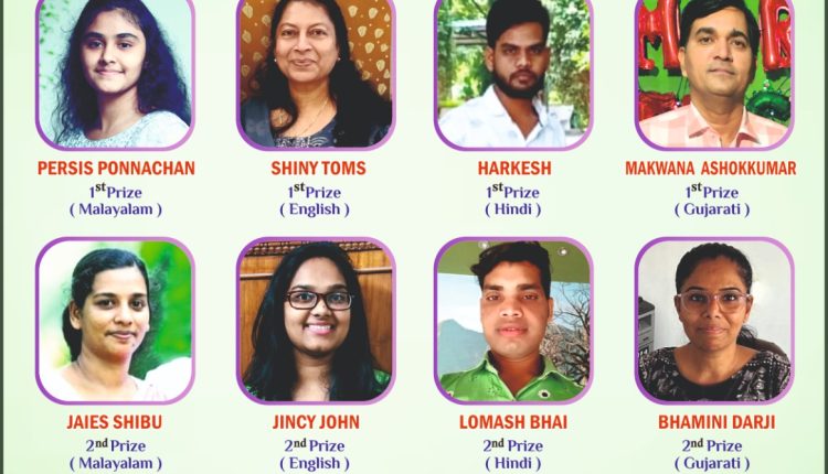 (സെലിബ്രേഷൻ സെന്റർ അസംബ്ലി ഓഫ് ഗോഡ്, സുരേന്ദ്രനഗർ) എന്നിവർ ഒന്നും രണ്ടും മൂന്നും സ്ഥാനങ്ങൾക്ക് കരസ്ഥമാക്കി.അതാത് ഭാഷകളിൽ ഒന്നും രണ്ടും മൂന്നും സ്ഥാനക്കാർക്ക് സർട്ടിഫിക്കറ്റും ₹5000, ₹3000, ₹2000 എന്ന നിലയിൽ ക്യാഷ് അവാർഡുകളും പങ്കെടുത്ത എല്ലാവർക്കും സർട്ടിഫിക്കറ്റും നൽകുന്നതാണെന്ന് ഭാരവാഹികൾ അറിയിച്ചു.