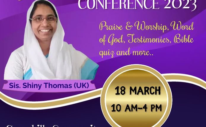 ഡബ്ലിൻ: ഐപിസി ഡബ്ലിൻ സഭയുടെ ആഭിമുഖ്യത്തിൽ ഏകദിന ലേഡീസ് കോൺഫ്രൻസ് മാർച്ച് 18 ശനിയാഴ്ച രാവിലെ പത്തുമണി മുതൽ വൈകിട്ട് 4 മണി വരെ ഗ്രീൻഹിൽസ് കമ്മ്യൂണിറ്റി സെൻട്രൽ വച്ച് നടക്കുന്നു. പാസ്റ്റർ സാനു പി മാത്യു മീറ്റിംഗ് ഉദ്ഘാടനം ചെയ്യും.