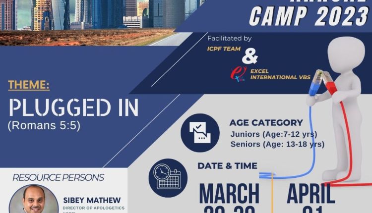 ഖത്തർ: ഇന്റർ കോളേജ് പ്രയർ ഫെല്ലോഷിപ്പ് (ICPF ) ദോഹ ചാപ്റ്ററിന്റെ നേതൃത്തത്തിൽ “Annual Camp 2023” മാർച്ച് 29, 30, തീയതികളിൽ ഉച്ചക്ക് 12.30 മുതൽ വൈകിട്ട് 5 മണി വരെയും ഏപ്രിൽ 1ന് രാവിലെ 9 മണി മുതൽ വൈകിട്ട് 5 മണി വരെയും റിലീജിയസ് കോംപ്ലെക്സിലെ ബിൽഡിംഗ് നമ്പർ രണ്ടിലെ വിവിധ ഹാളുകളിൽ വെച്ച് നടത്തപെടുന്നു.