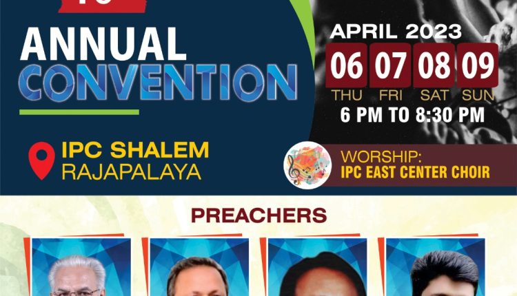 ഐ.പി.സി ബാംഗ്ലൂർ ഈസ്റ്റ് സെന്റർ കൺവെൻഷൻ ഏപ്രിൽ 6 നാളെ മുതൽ