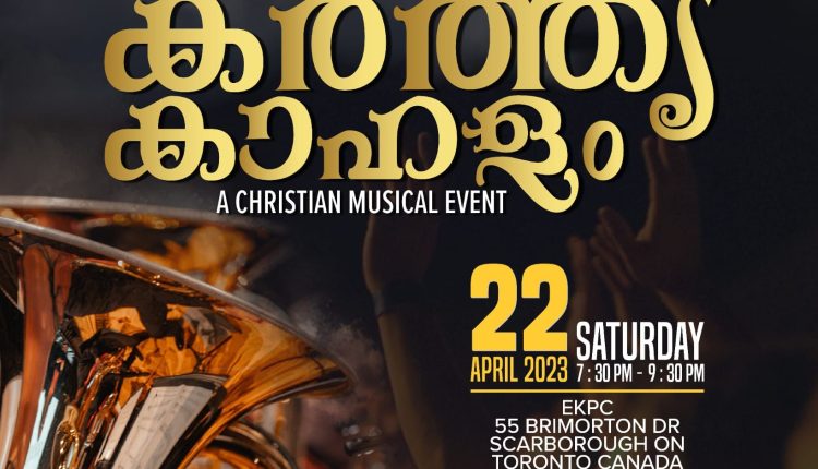 ടോറോന്റോ: എബനേസർ കേരള പെന്തക്കോസ്റ്റൽ ചർച്ച് ഒരുക്കുന്ന മ്യൂസിക്കൽ ഇവന്റ് ‘കർത്തൃ കാഹളം’ എന്ന പേരിൽ എപ്രിൽ 22 ന് രാത്രി 7:30 മുതൽ രാത്രി 9 :30 വരെ എബനേസർ കേരള പെന്തക്കോസ്റ്റൽ ചർച്ചിൽ വച്ച് നടക്കും.