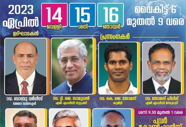 പെരുമ്പാവൂർ :അസംബ്ലി സ് ഓഫ് ഗോഡ് മലയാളം ഡിസ്ട്രിക്ട് ഉത്തരമേഖല കൺവൻഷൻ ഏപ്രിൽ 14 മുതൽ 16 വരെ പെരുമ്പാവൂർ മുൻസിപ്പൽ സ്റ്റേഡിയത്തിൽ നടക്കും.