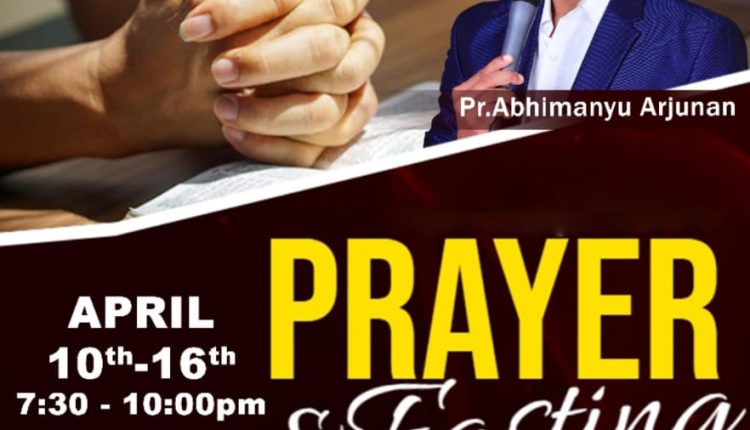 ഷാർജ: പ്രാർത്ഥനാസംഗമം (International Prayer Fellowship ) ഒരുക്കുന്ന 21 ദിന ഉപവാസ പ്രാർത്ഥനയുടെ അവസാന ആഴ്ചയിൽ പാസ്റ്റർ അബിമന്യു അർജുൻ (ഏപ്രിൽ 10 മുതൽ 16 വരെ യുള്ള ദിവസങ്ങളിൽ വൈകിട്ട് 7:30 മുതൽ 10വരെ ദൈവ വചനം ശ്രുശൂഷിക്കും .