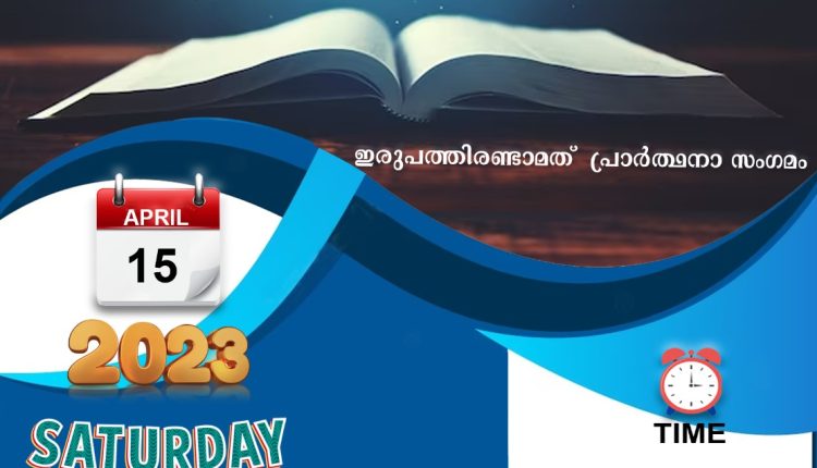 യേശുവിൻ തൃപ്പാദത്തിൽ 22 മത് പ്രാർത്ഥനാ സംഗമം ഏപ്രിൽ 15ന്