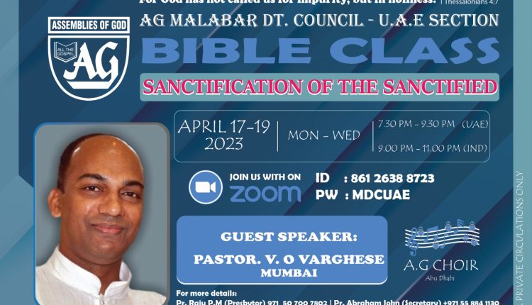 ഏ.ജി മലബാർ ഡിസ്ട്രിക്ട് കൗൺസിൽ യു.എ.ഇ സെക്ഷൻ: ബൈബിൾ ക്ലാസ് ഏപ്രിൽ 17 മുതൽ
