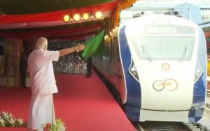 തിരുവനന്തപുരം: കേരളത്തിന് അനുവദിച്ച ആദ്യ വന്ദേഭാരത് എക്സ്പ്രസ് പ്രധാനമന്ത്രി നരേന്ദ്രമോദി ഫ്ളാഗ് ഓഫ് ചെയ്തു. 11 ജില്ലകളിലൂടെ സര്വീസ് നടത്തുന്ന കേരളത്തിലെ ആദ്യത്തെ വന്ദേഭാരത് എക്സ്പ്രസിന് തമ്പാനൂർ റെയില്വേ സ്റ്റേഷനിലാണ് പ്രധാനമന്ത്രി ഫ്ളാഗ് ഓഫ് ചെയ്തത്.