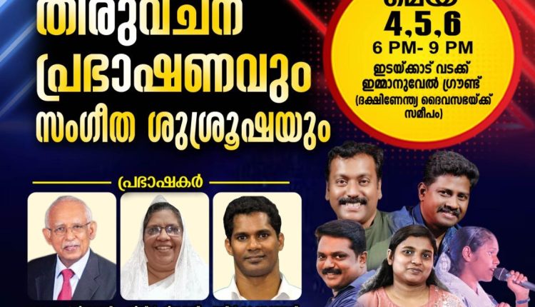 കൺവൻഷൻ പ്രഭാഷകരായ പാസ്റ്റർ ജോൺ പി തോമസ്, സിസ്റ്റർ ഷീലാ ദാസ്, പാസ്റ്റർ കെ ജെ തോമസ് എന്നിവർ ദൈവവചനം സംസാരിക്കും.