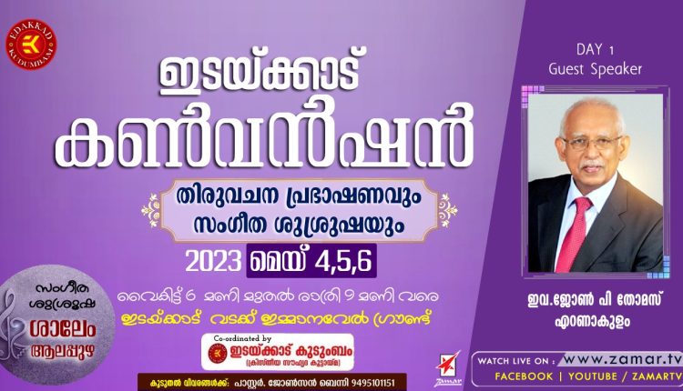 കടമ്പനാട് : യുവജന സൗഹൃദ കൂട്ടായ്മയായ ഇടയ്ക്കാട് കുടുംബം സംഘടിപ്പിക്കുന്ന ഇടയ്ക്കാട് കൺവെൻഷന് ഇന്ന് തുടക്കമാകും. വ്യാഴം, വെള്ളി, ശനി ദിവസങ്ങളിലായി നടക്കുന്ന യോഗങ്ങൾക്കായുള്ള ക്രമീകരണങ്ങൾ പൂർത്തിയായി. ഇടയ്ക്കാട് വടക്ക്, ദക്ഷിണേന്ത്യ ദൈവസഭയ്ക്ക് സമീപമായി ഇമ്മനുവേൽ ഗ്രൗണ്ടാണ് കൺവൻഷൻ വേദി. വൈകിട്ട് 6 മുതൽ 9 മണി വരെയാണ് സമയം. മുതിർന്ന മാധ്യമപ്രവർത്തകൻ സുവി. ഷാജൻ ജോൺ ഇടയ്ക്കാട് കൺവെൻഷൻ ഉദ്ഘാടനം ചെയ്യും. സുവി. ജോൺ പി തോമസ് ഇന്ന് ദൈവവചനം സംസാരിക്കും.