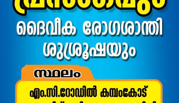 കൊട്ടാരക്കര: ദി പെന്തെക്കൊസ്ത് മിഷൻ ആയൂർ സഭയുടെ ആഭിമുഖ്യത്തിൽ സുവിശേഷ പ്രസംഗം മെയ് 7, 8 തീയതികളിൽ വൈകിട്ട് 5:45 ന് എം സി റോഡിലെ കമ്പംകോട് പാലത്തിന് സമീപമുള്ള ഗ്രൗണ്ടിൽ നടക്കും.
