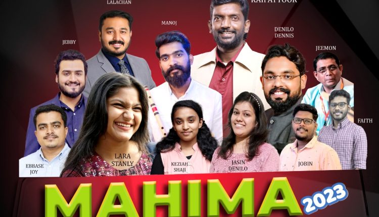 തുടർന്ന് നടക്കുന്ന മഹിമ 2023 എന്ന മ്യൂസിക്കൽ നൈറ്റ് ക്രൈസ്തവ എഴുത്തുപുര യൂ.എ.ഇ ചാപ്റ്റർ പ്രസിഡന്റ് സുവി.ജോൺസി കടമ്മനിട്ട ഉൽഘാടനം ചെയ്യും. യൂ.പി.ഫ് പ്രസിഡന്റ് പാസ്റ്റർ നിഷാന്ത്.എം.ജോർജ് ദൈവവചനത്തിൽ നിന്നും സംസാരിക്കും.പ്രശസ്ത ക്രിസ്തിയ സംഗീത സംവിധായകൻ അനിൽ കൈപ്പട്ടൂരിനൊപ്പം യൂ.എ.ഇ ക്രൈസ്തവ ഗാന രംഗങ്ങളിൽ നിറ സാനിധ്യമായ ഡെനിലോ ഡെന്നിസ്, എബേസ് ജോയി, റോബിൻ ലാലച്ചൻ, ലാറ സ്റ്റാൻലി, കെസിയ ഷാജി, ജാസിൻ ഡെനിലോ എന്നിവർ ഗാന സന്ധ്യക്ക് നേതൃത്വം കൊടുക്കും.