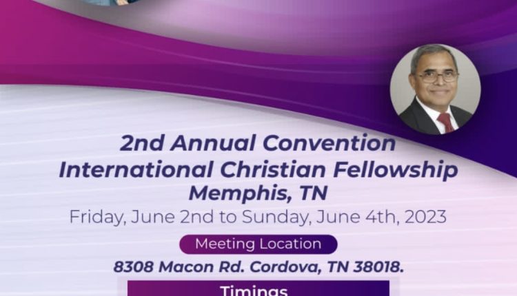 ഇന്റർനാഷണൽ ക്രിസ്ത്യൻ ഫെല്ലോഷിപ്പിന്റെ രണ്ടാമത് വാർഷിക കൺവൻഷൻ 2023 ജൂൺ 2 വെള്ളി മുതൽ 4 ഞായർ വരെ ടെന്നസിയിലെ മെംഫിസിൽ സഭാംഗണത്തിൽ വച്ച് നടക്കും.
