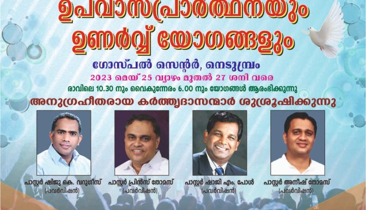 നെടുമ്പ്രത്ത് ഉപവാസ പ്രാർത്ഥനയും ഉണർവ് യോഗങ്ങളും നാളെ മുതൽ