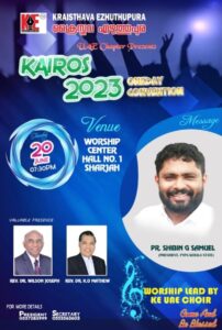 ക്രൈസ്തവ എഴുത്തുപുര യു.എ.ഇ ചാപ്റ്റർ കൈറോസ് 2023 ഏകദിന കൺവൻഷൻ ഇന്ന് ഷാർജയിൽ