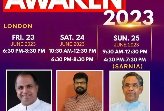 ലണ്ടൻ, ഒന്റാരിയോ: ഗ്രേസ് വാലി ഗോസ്പൽ ചർച്ചിന്റെ ആഭിമുഖ്യത്തിൽ ജൂൺ 23 മുതൽ ജൂൺ 25 വരെ “Awaken 2023” എന്ന പേരിൽ ഉണർവ് യോഗങ്ങൾ ലണ്ടനിലും സാർണിയയിലുമായി നടത്തപ്പെടുന്നു. പ്രസ്തുത യോഗങ്ങളിൽ പാസ്റ്റർ വർഗീസ് ബേബി ദൈവവചനത്തിൽ നിന്നും സംസാരിക്കുന്നു.