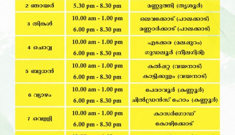 12 പേരടങ്ങുന്ന ഒരു സംഘം മൂന്ന് വാഹനങ്ങളിൽ യാത്ര ചെയ്യുന്നു. സമയം ലഭിക്കുന്നതനുസരിച്ച് ഉച്ചകഴിഞ്ഞുള്ള യാത്രയിൽ പരസ്യ യോഗങ്ങളും നടക്കും.