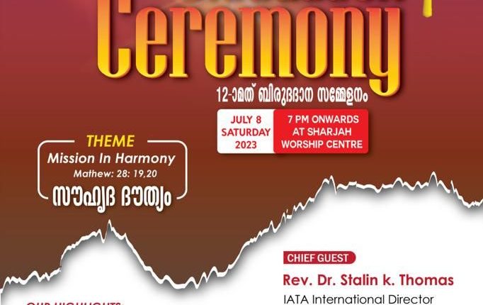 ഷാർജാ: ഇന്റർനാഷണൽ അസോസിയേഷൻ ഫോർ തിയോളജിക്കൽ അക്രെഡിഷൻ (IATA) അംഗീകാരം ഉള്ള വർഷിപ് സെന്റർ കോളേജ് ഓഫ് തിയോളജിയുടെ 12 മത് ബിരുദദാന സമ്മേളനം ജൂലൈ 8, ശനിയാഴ്ച വൈകിട്ട് 7 മണിക്ക് ഷാർജാ വർഷിപ് സെന്റർ മെയിൻ ഹാളിൽ നടക്കും.