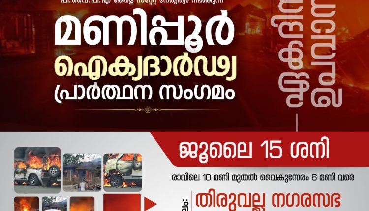 മണിപ്പൂർ: സംസ്ഥാന പിവൈപിഎയുടെ ഏകദിന ഉപവാസവും സമാധാന റാലിയും ജൂലൈ 15ന് തിരുവല്ലയിൽ